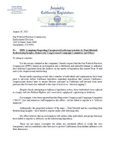 “Californians have the right to know who is attempting to buy influence with their elected state representatives–but in the case of Prop 50 redistricting legislation, the public has been deprived of that transparency. I’m calling on the FPPC to launch an immediate investigation to enforce our lobbying transparency laws and help get to the bottom of the mystery of ‘Who Drew The Maps’ that surrounds this corrupt redistricting scheme.” -CA State Asm. Carl DeMaio